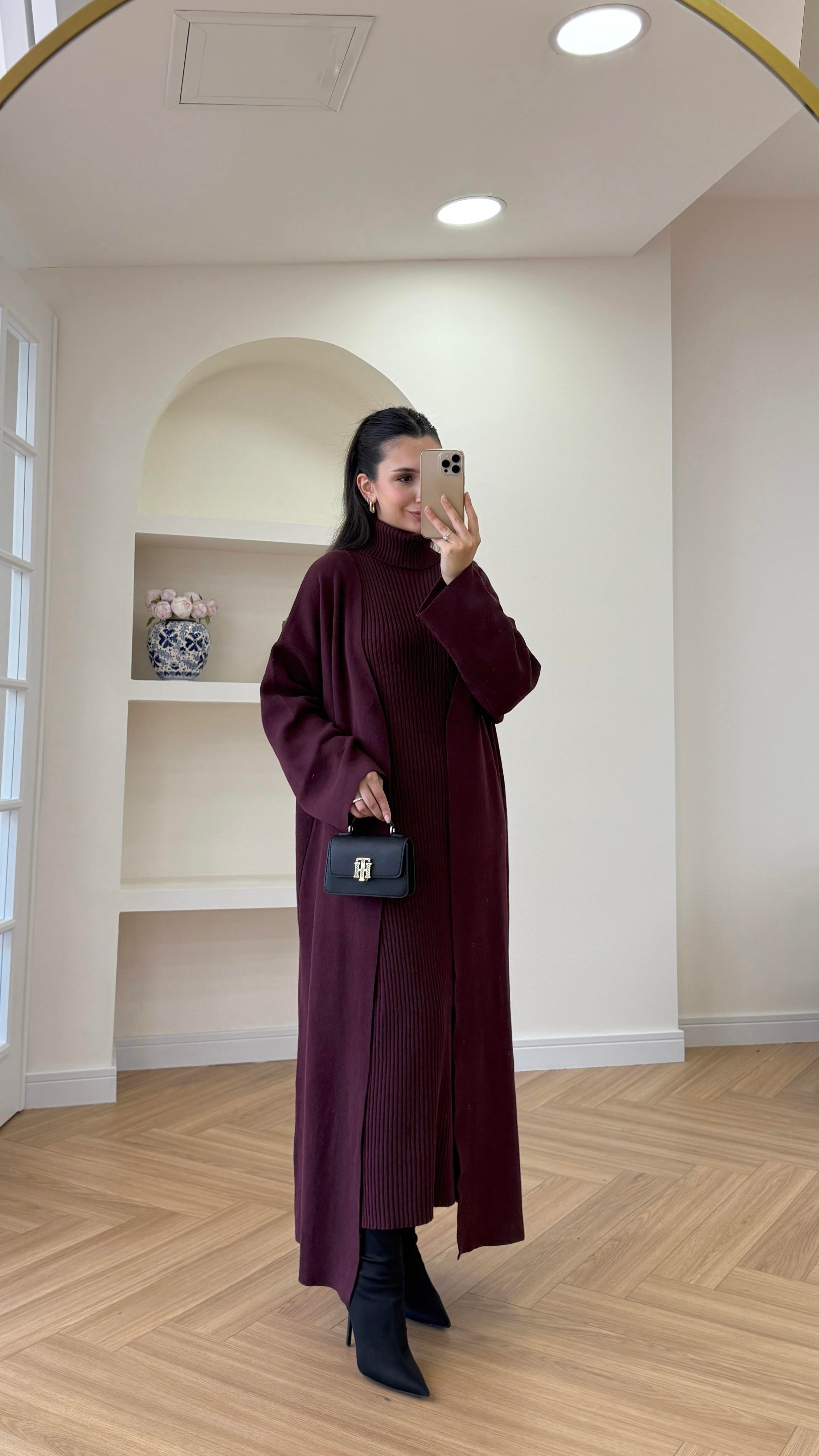 HIRKALI TRİKO ELBİSE TAKIM - BORDO