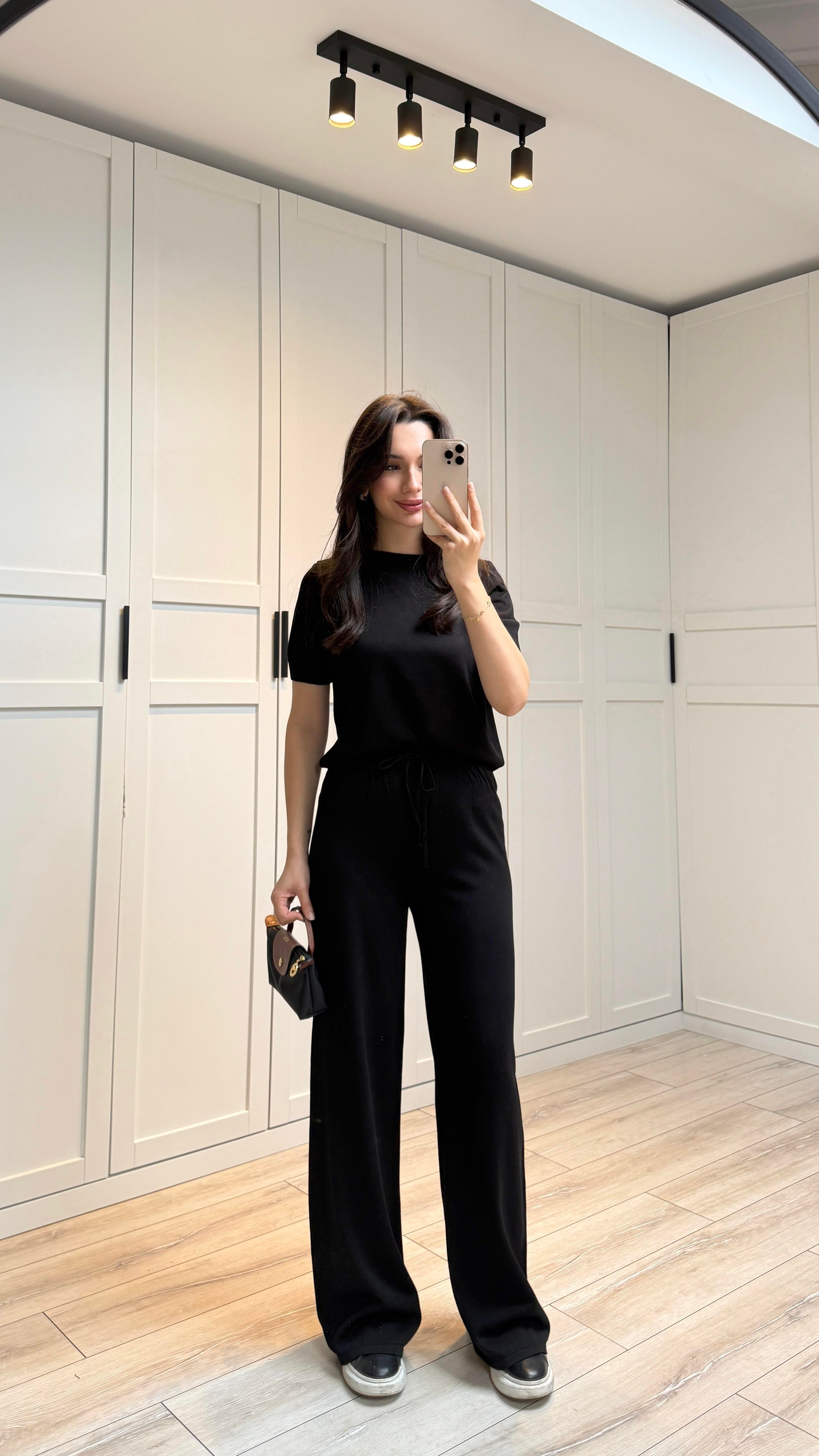 KISA KOLLI ÇELİK TRİKO TAKIM - SİYAH