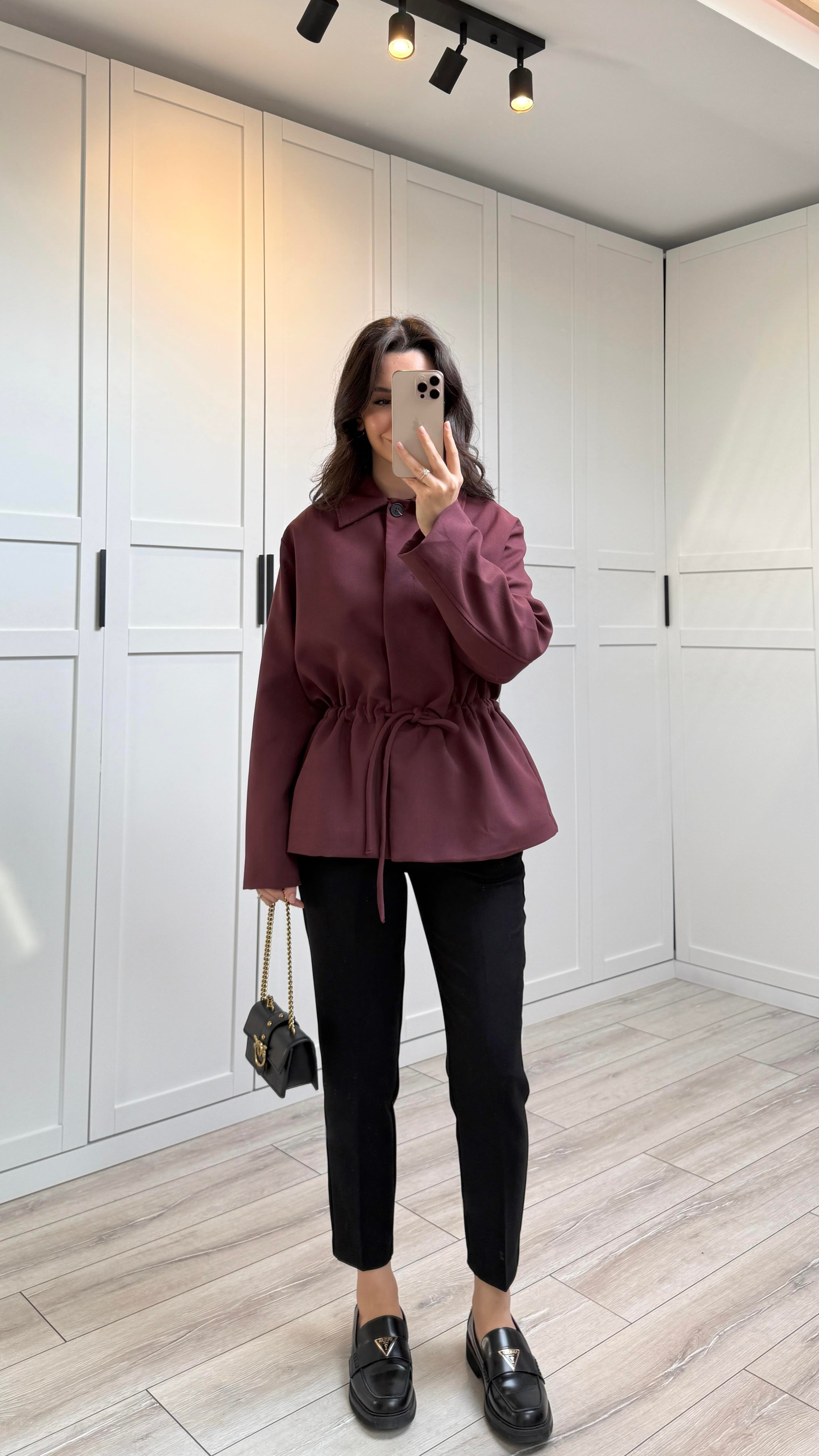 LEYA BELDEN BAĞLAMALI TRENÇKOT - BORDO (EC-UP0058)
