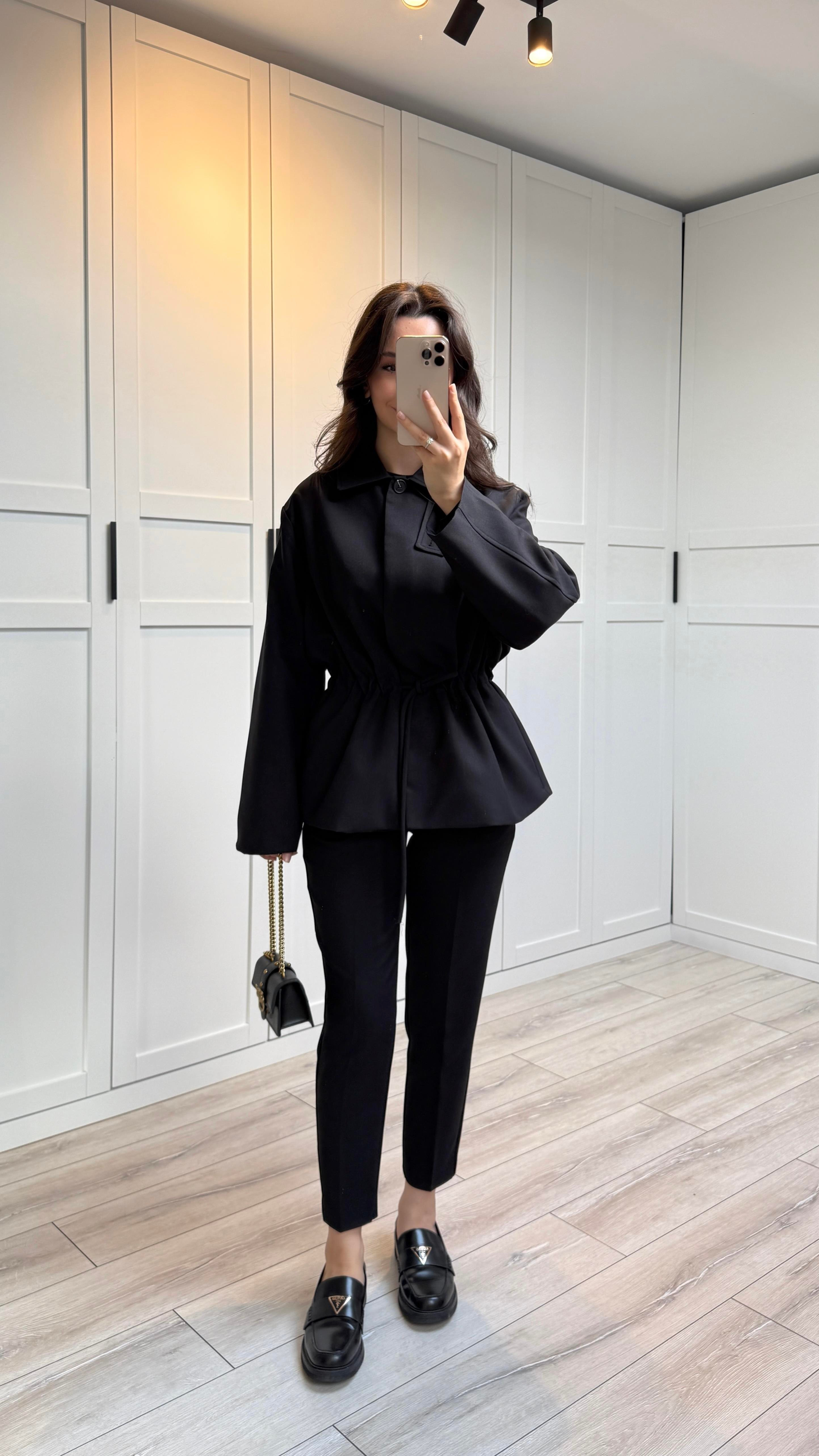 LEYA BELDEN BAĞLAMALI TRENÇKOT - SİYAH (EC-UP0058)