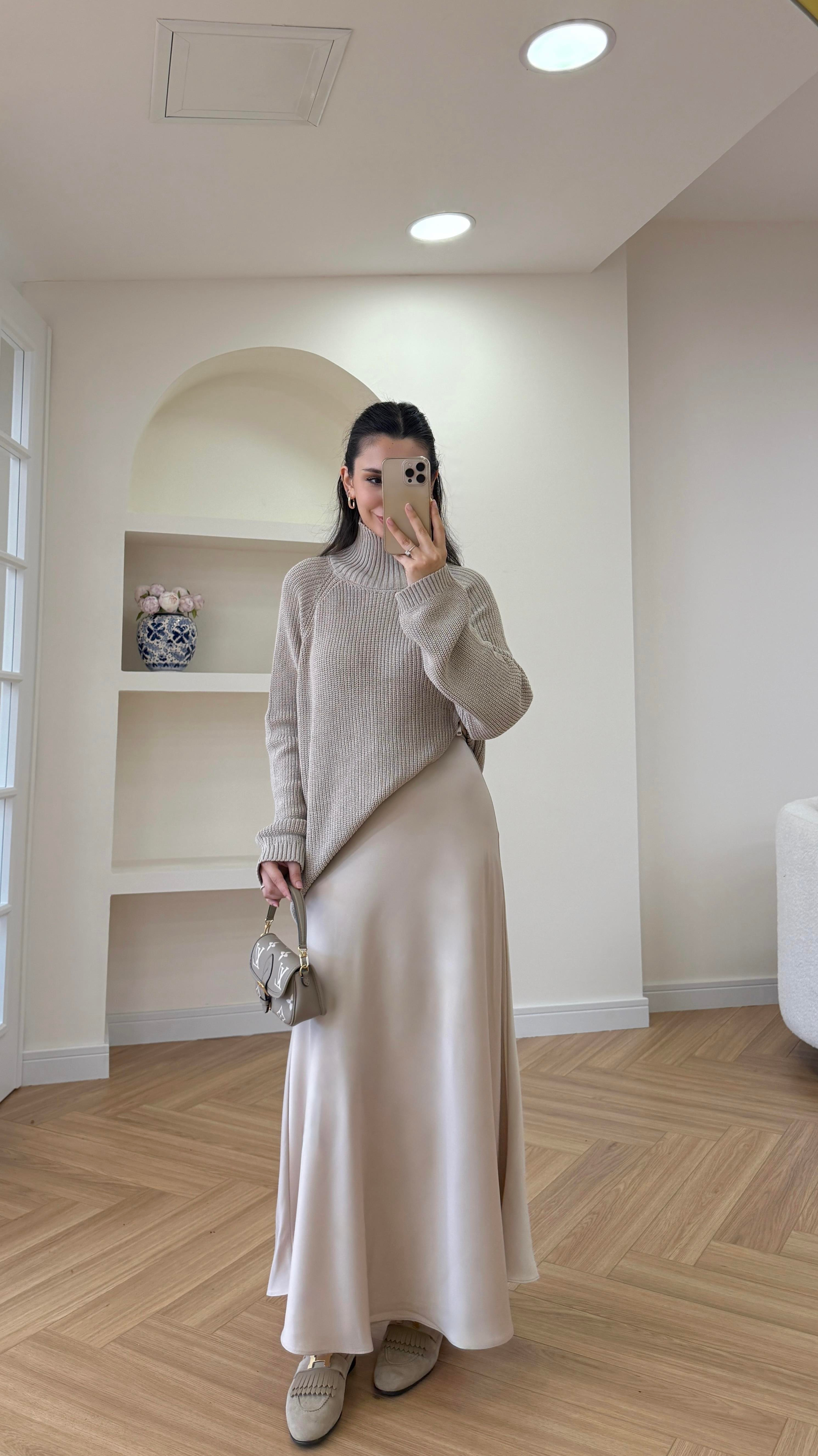 MAXİ BOY SATEN ETEK - BEJ (EC-KT0020)
